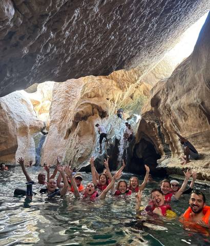 Doručak u hotelu. Nakon doručka, odlazimo put juga gdje ćemo se najprije zaustaviti na photo stop kod Bimmah sinkhole. Radi se o depresiji u stijeni koja je nastala urušavanjem vapnenca čije dno je ispunjeno vodom. Oman je poznat po svojim prirodnim ljepotama, a ovime započinje naša omanska avantura upravo tim prirodnim ljepotama. Zatim nastavljamo prema wadi Shab-u. Ako ste čuli riječ wadi onda znate da se radi o dolini, najčešće klancu između planina ispunjene vodom. Bogat svojim vodenim izvorima, Oman se može pohvaliti prekrasnim kanjonima i rijekama koje formiraju nevjerojatne oblike stijena, prolaze i puteljke, a kojima ćemo i same proći. Naša pješačka avantura vodi nas kroz kanjon, plantaže palmi datulja, a zatim dolazimo do prirodnog bazena gdje ćemo se kupati, nakon čega se put nastavlja kroz vodu sve do prekrasnog slapa. Oko nas će cijelim putem biti ništa osim ljepote. Zatim nastavljamo prema jugu do hotela u gradu Sur. Check in u hotel. Navečer predlažemo večeru u lokalnom restoranu jer je ovaj dio Omana poznat po ribi i morskim plodovima kojih ćemo se ovdje najesti po vrlo prihvatljivim cijenama. Povratak u hotel. Noćenje.