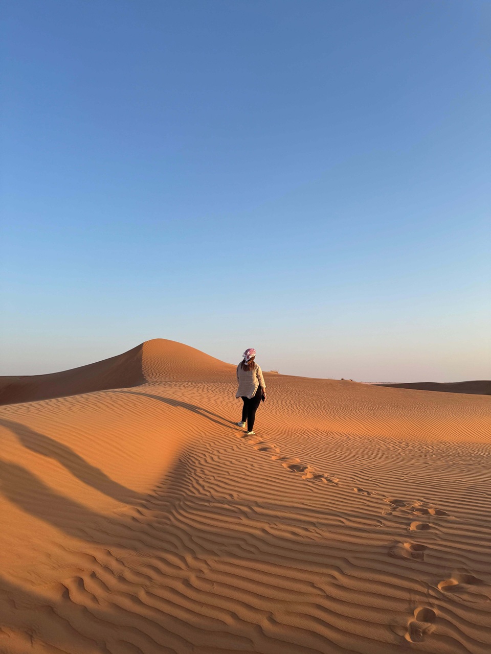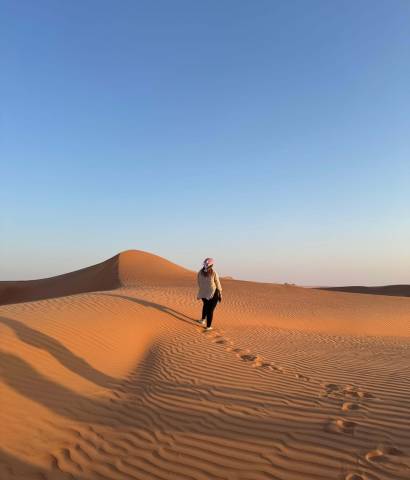 Doručak u hotelu. Check out iz hotela te odlazak prema pustinji. Do pustinjskog resorta će nas prevesti džipovi, a u resortu će nas dočekati na tradicionalan način, s datuljama i omanskom kavom. Nakon check in-a u sobe, odlazimo džipovima u beduinski kamp na pravo pustinjsko iskustvo uz vrlo ljubazne domaćine. Beduini će nam ispričati svoju priču o tome kako žive u pustinji, gdje se školuju, kako zarađuju za život te odgovoriti na sva naša pitanja. Ugostit će nas doslovno u svome šatoru kojeg nazivaju domom. Poslužit će nas ručkom, nakon ćemo imamo priliku jahati deve. Zatim odlazimo na safari i vožnju po pustinjskim dinama gdje ćemo se spuštati po visokim dinama kao po toboganu. Uz pjesmu i ples dočekat ćemo zalazak sunca te na naljepšoj dini napraviti prekrasne pustinjske fotke u zalazak sunca. Povratak u pustinjski resort. Večera u resortu. Nakon večere, možete se popesti na visoku dinu odmah iza resorta kako biste u tišini i potpunom mraku promatrale zvijezde. Zapalit ćemo vatru i uz arapsku glazbu uživati u večeri pod zvijezdama. Ovo jednostavno morate doživjeti. Noćenje.