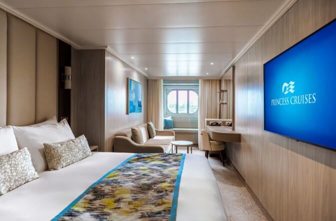 Kabina s prozorom: Bilo da uživate u miru beskrajnog plavetnila oceana ili u pogledu na novi grad na horizontu - Premium Oceanview kabina pruža savršene prizore iz udobnosti vlastite sobe. Ove kabine uključuju sve sadržaje unutarnje kabine, uz dodatnu pogodnost prozora s pogledom na more koji prostoru daje prozračnost i osjećaj otvorenosti. Približno 19,5 m², bračni krevet ili dva odvojena kreveta, veliki prozor s pogledom na more, radni stol sa stolicom, privatna kupaonica s tušem, sušilo za kosu i kupaonski pribor, posteljina od 100% pamuka visoke kvalitete, hladnjak, TV ravnog ekrana, prostrani ormar, digitalni sef