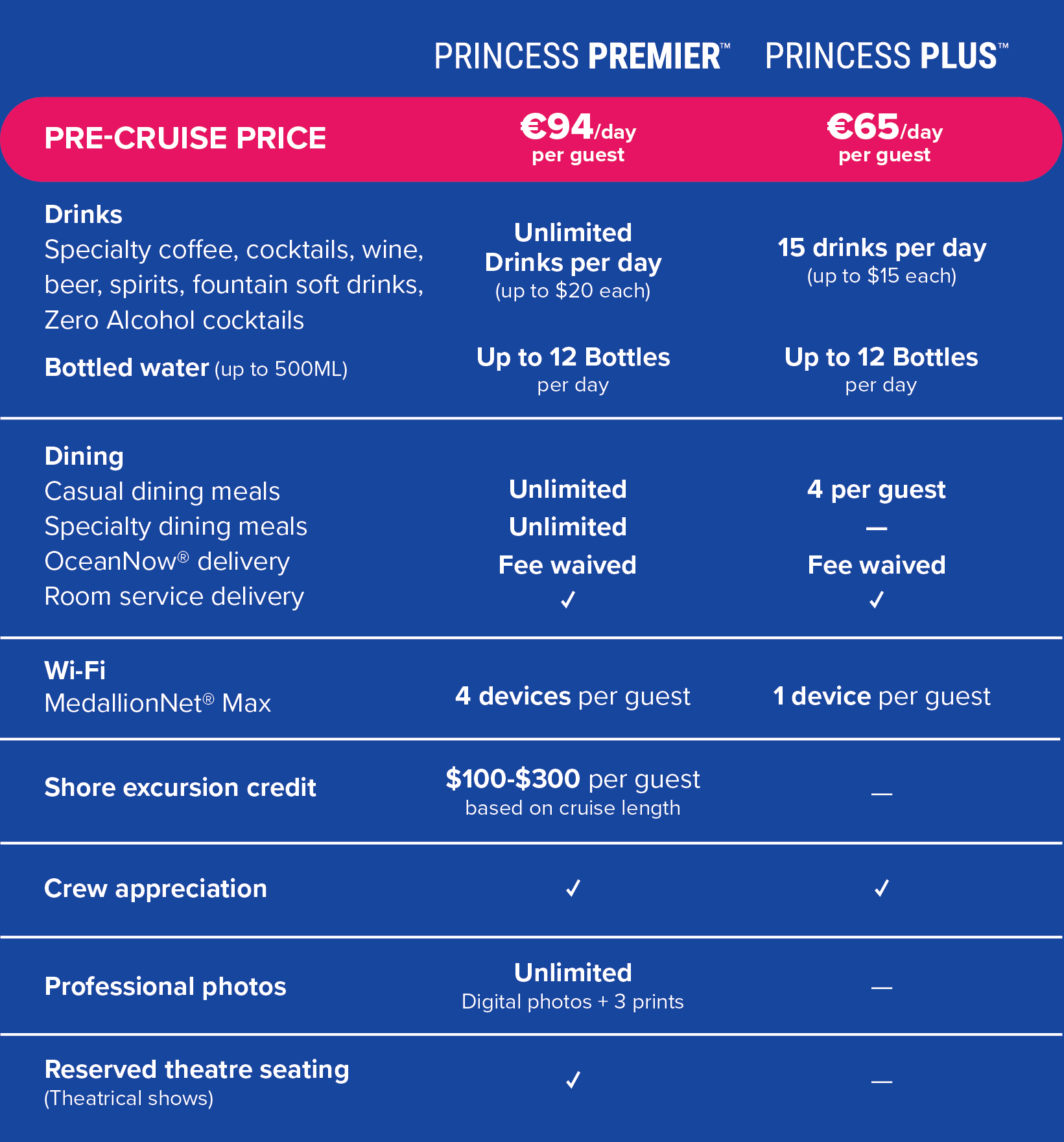 - novu MedallionClass tehnologiju koja omogućava personalizirane usluge poput beskontaktnog plaćanja, beskontaktni ulazak u kabinu, naručivanja pića i obroka gdje god se nalazili, pristup svim informacijama na brodu putem pametnih uređaja, lociranje članova obitelji ili ekipe kroz mobilnu aplikaciju (moguće je i deaktivirati)