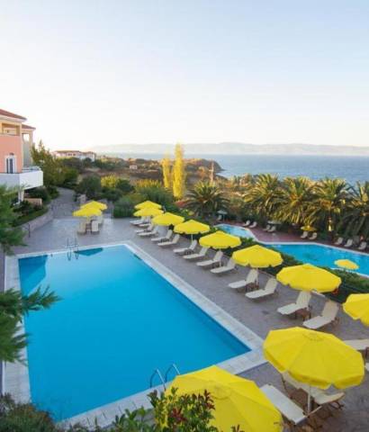 Hotelska ponuda: hotelski kompleks, ukupno 120 soba; glavni buffet restoran, dva "a-la-carte" restorana (mediteranska kuhinja), dva bara; dva vanjska bazena, dječji bazen; bežični internet, parking dostupan (prema raspoloživosti). Ručnici, ležaljke i suncobrani uz bazen su besplatni, a na plaži uz doplatu.