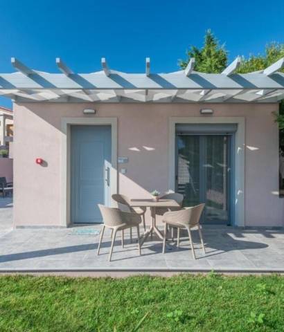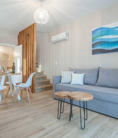 Položaj: cca. 100 m od pješčane i šljunčane plaže, u Agios Ioannisu, cca. 8 km od centra Myrine, 17 km od zračne luke.